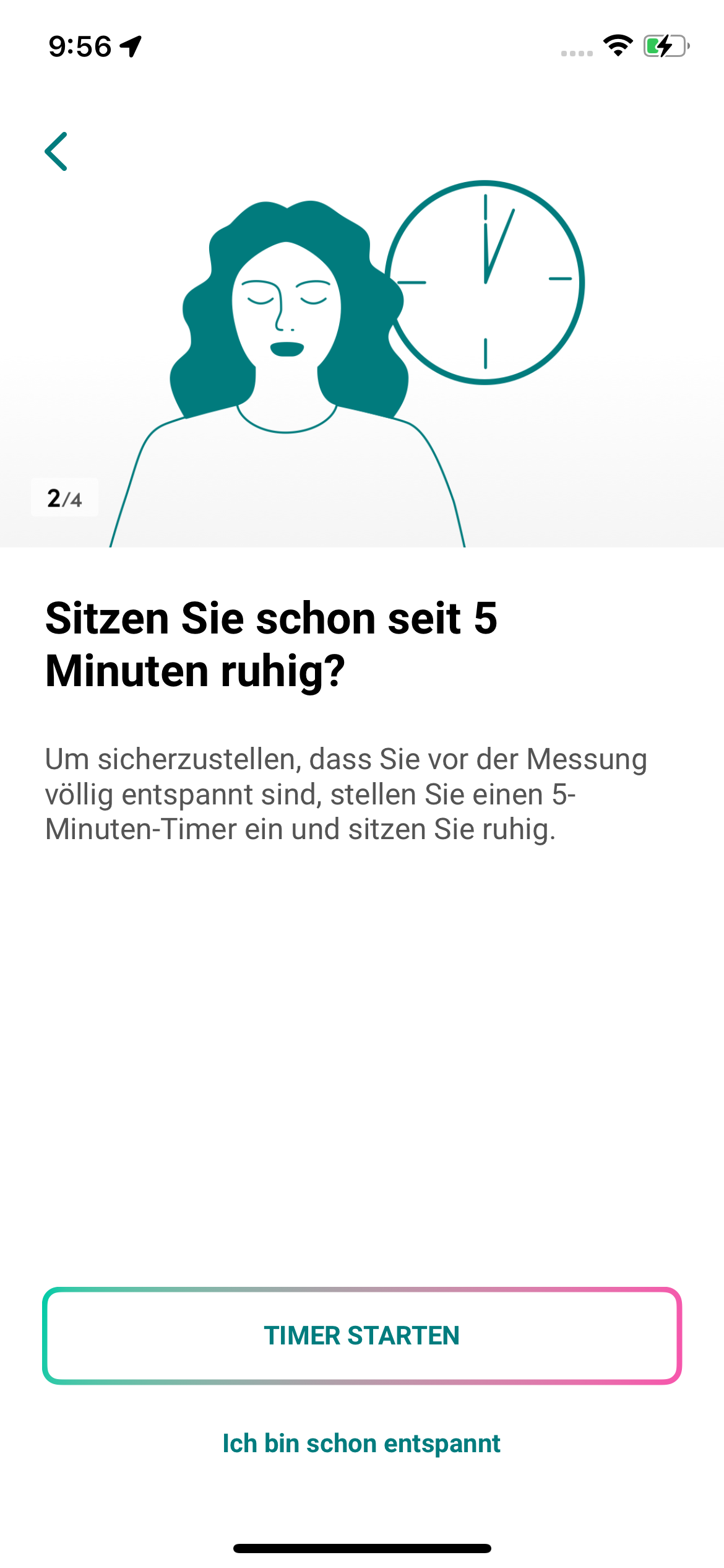 - Die App wird Sie anleiten, eine korrekte Messung durchzuführen. Achten Sie darauf, sich während der Messung nicht zu bewegen und nicht zu sprechen.