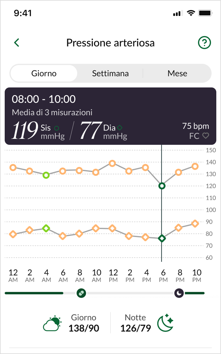 Cliccando sull'icona del punto interrogativo accanto a "Pressione arteriosa" potrà visualizzare i grafici di classificazione.
